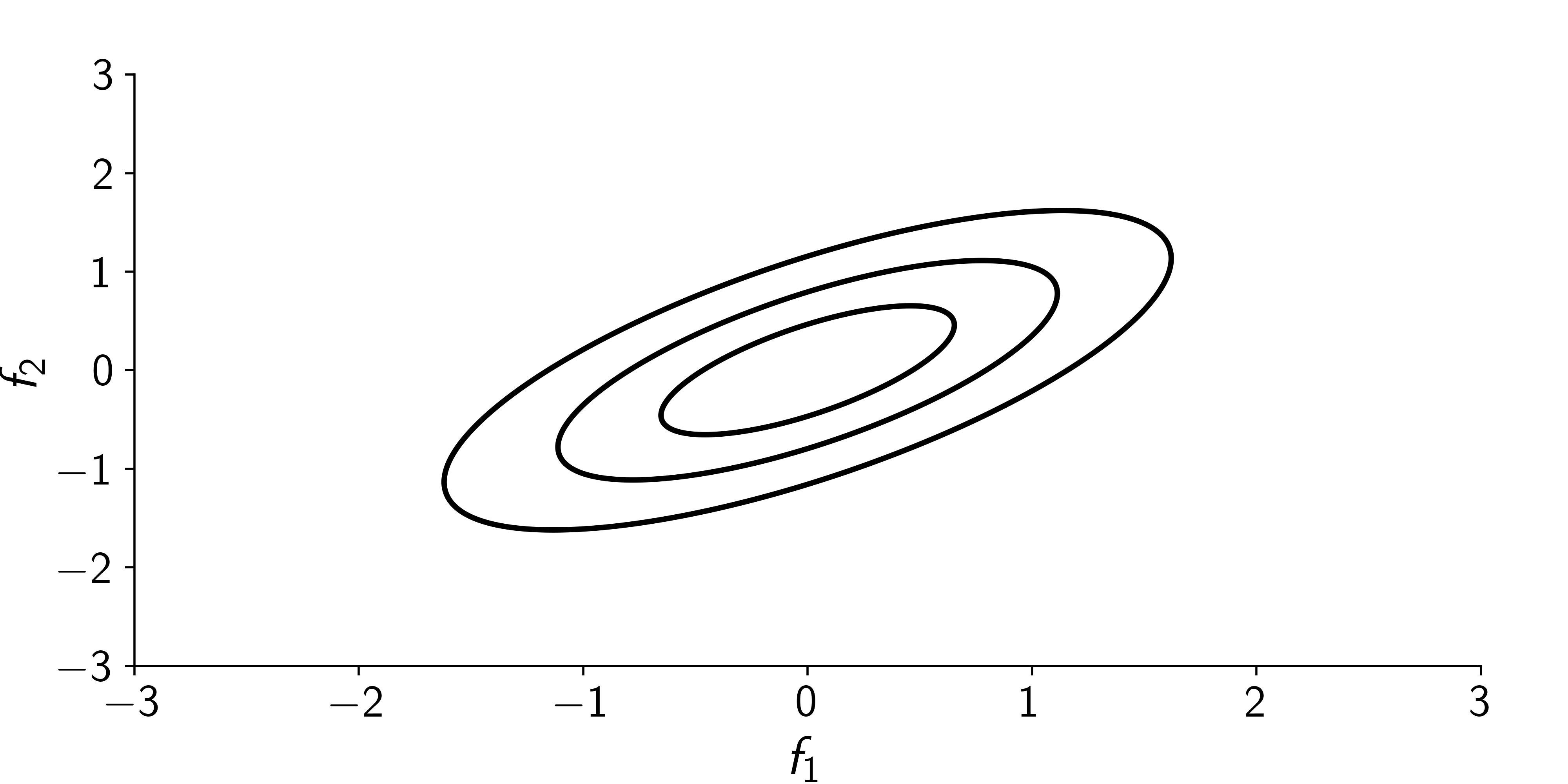 \[ {\textcolor{latent}{\boldsymbol{f}}}= \begin{bmatrix} {\textcolor{latent}{\boldsymbol{f}}}_1 \\ {\textcolor{latent}{\boldsymbol{f}}}_2 \end{bmatrix} \sim {\mathcal{N}}\left(\begin{bmatrix} {\boldsymbol{\mu}}_1 \\ {\boldsymbol{\mu}}_2 \end{bmatrix}, \begin{bmatrix} {\boldsymbol{\Sigma}}_{11} & {\boldsymbol{\Sigma}}_{12} \\ {\boldsymbol{\Sigma}}_{21} & {\boldsymbol{\Sigma}}_{22} \end{bmatrix}\right) \]