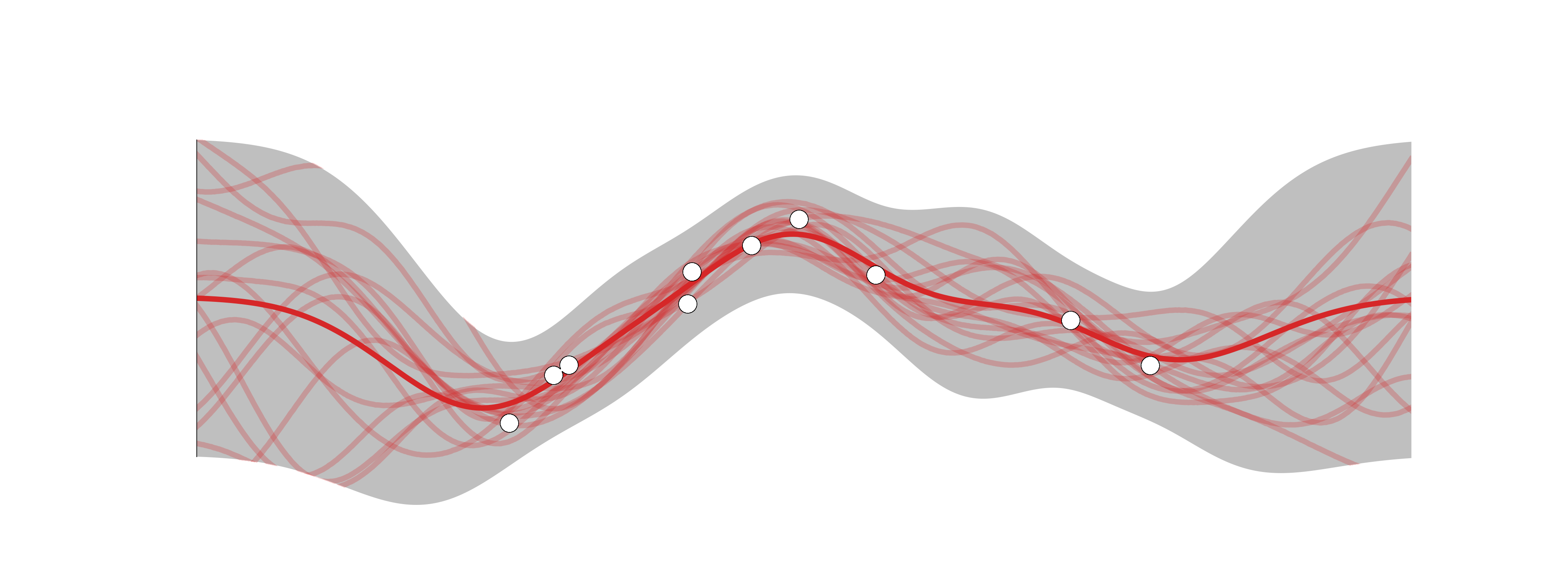 where \({\boldsymbol{K}}=k({\textcolor{input}{\boldsymbol{X}}}, {\textcolor{input}{\boldsymbol{X}}})\), \({\boldsymbol{k}}_\star=k({\textcolor{input}{\boldsymbol{X}}}, {\textcolor{input}{\boldsymbol{x}}}_\star)\), and \(k_{\star\star}=k({\textcolor{input}{\boldsymbol{x}}}_\star, {\textcolor{input}{\boldsymbol{x}}}_\star)\).